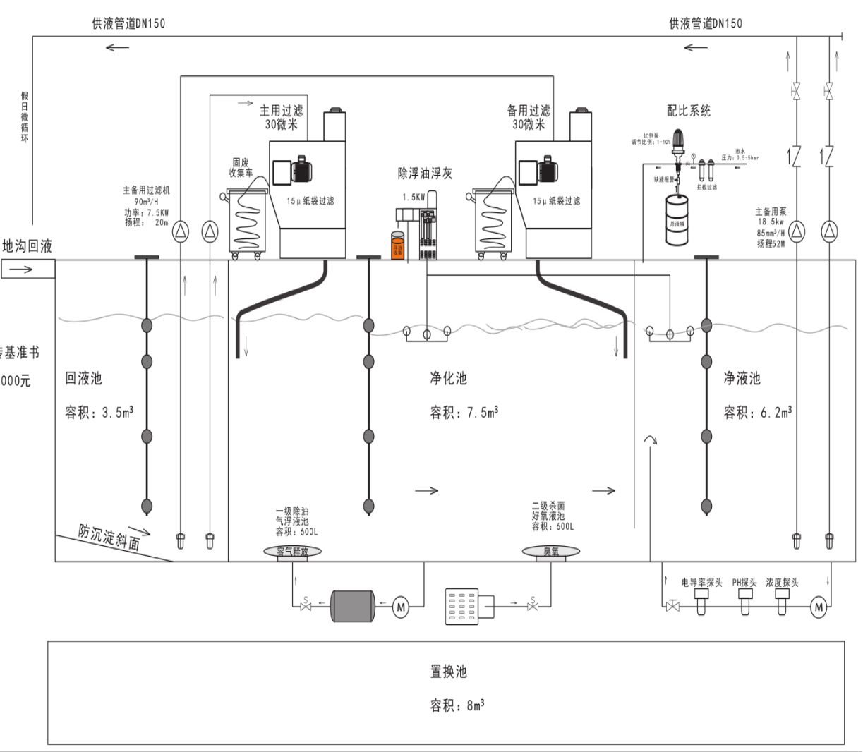 4) 殺菌裝置:多個臭氧殺菌裝置,殺菌除臭,確保過濾后切削液品質,延長切削液使用壽命;